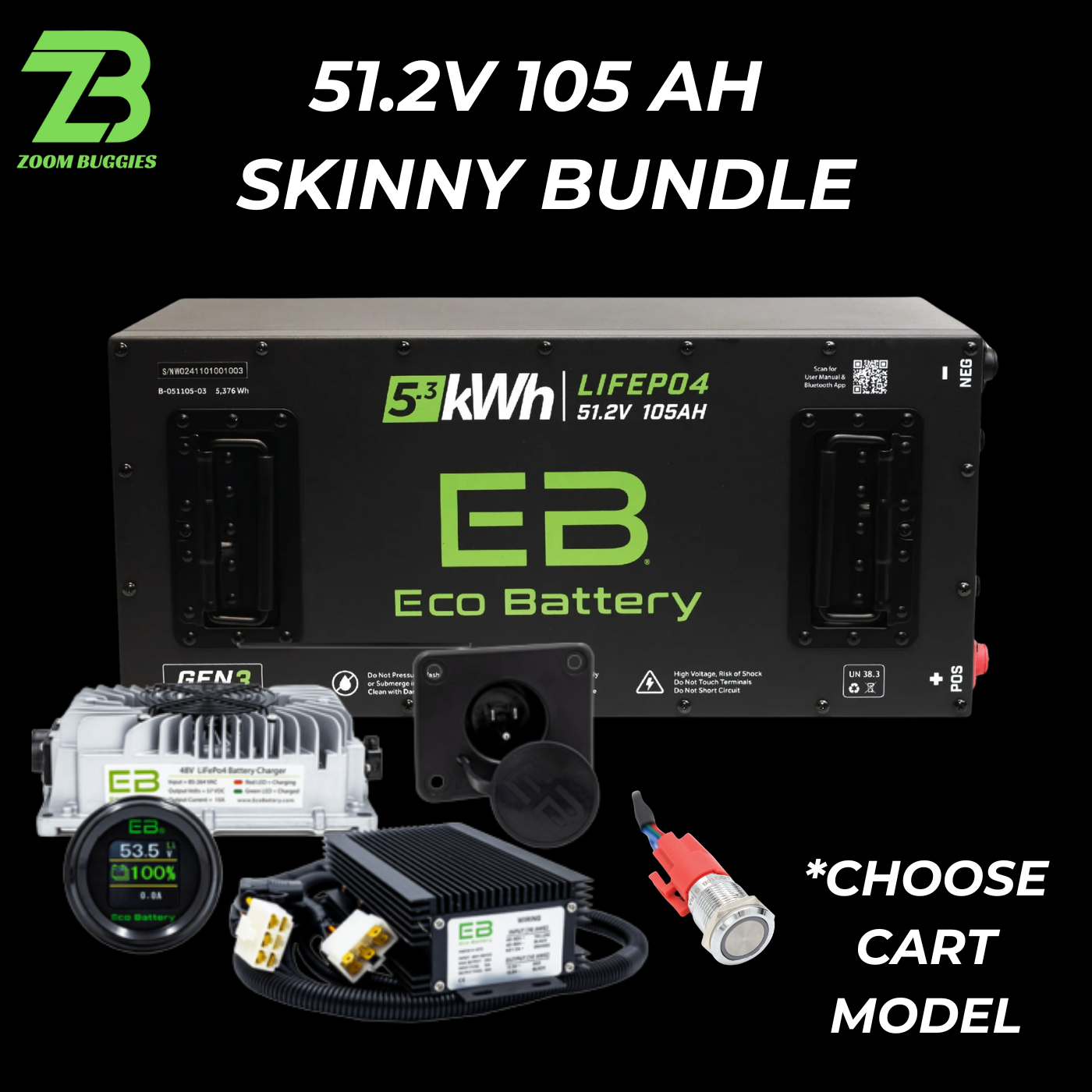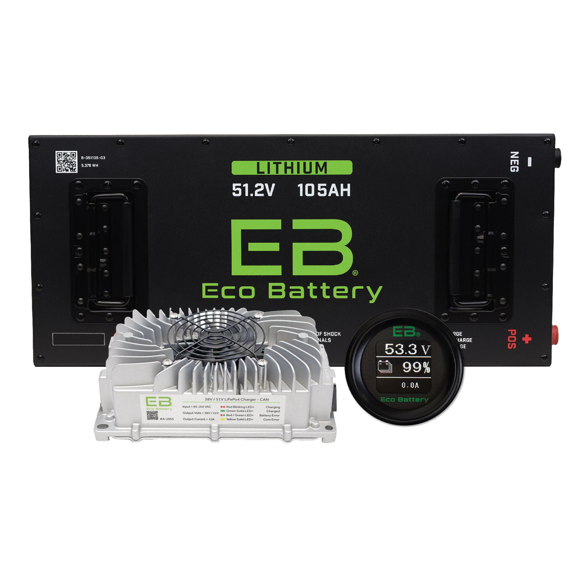 Eco Battery 48V (51v) 105Ah "Skinny" LifePo4 Golf Cart Lithium Battery Bundle